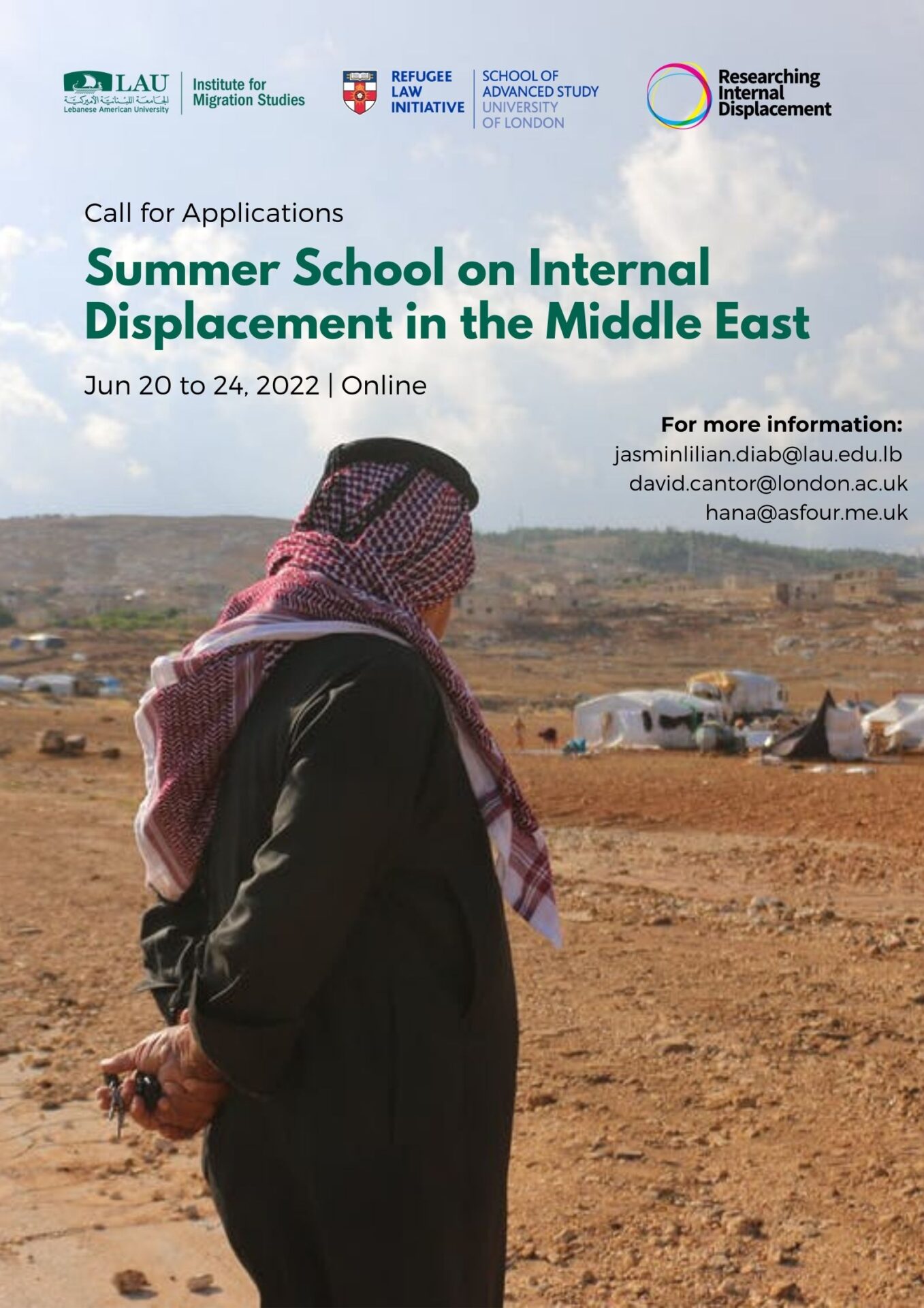 The Middle East Research Network on Internal Displacement (MERNID), in partnership with the Internal Displacement Research Programme (IDRP) at the University of London’s Refugee Law Initiative (RLI) and the Lebanese American University’s Institute for Migration Studies, cordially invites you to apply to our upcoming Summer School.